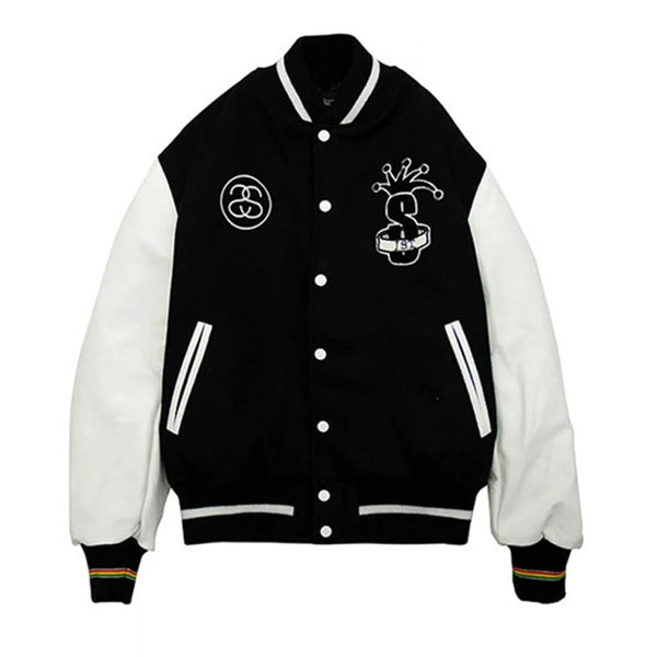 Bold Stüssy Tribe graphics and logos embroidered on chest and back